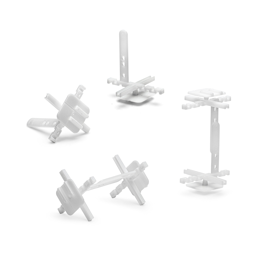 Αποτελούν εξειδικευμένα συστήματα ευθυγράμμισης που διασφαλίζουν τη σταθερή διάταξη και τη συμμετρική αρμολόγηση των υαλότουβλων. Συμβάλλουν στη μείωση των κατασκευαστικών αποκλίσεων, ενισχύοντας την αντοχή και την αισθητική ποιότητα του τελικού αποτελέσματος.